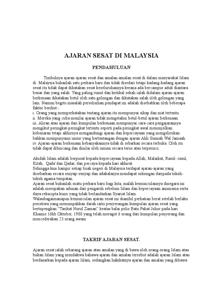 Dari Masa Klasik Tengah Hingga Modern. Definisi asas ajaran-ajaran kritikan-kritikan dan pengaruh kumpulan-. Ajaran Sesat Di Malaysia Ajaran sesat adalah satu fenomena yang mengancam keharmonian masyarakat Islam di Malaysia dewasa ini.